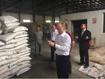 美国海鲜亚太大中华区总裁拜访浙江金甲水产饲料有限公司。浙江金甲水产饲料有限公司总经理田文瑞、副总经理石平等热情接待美国客人,并与他们进行交流,美国客人还参观生产线等。